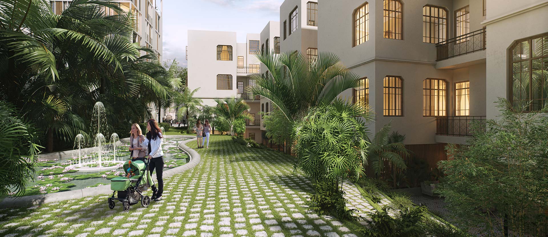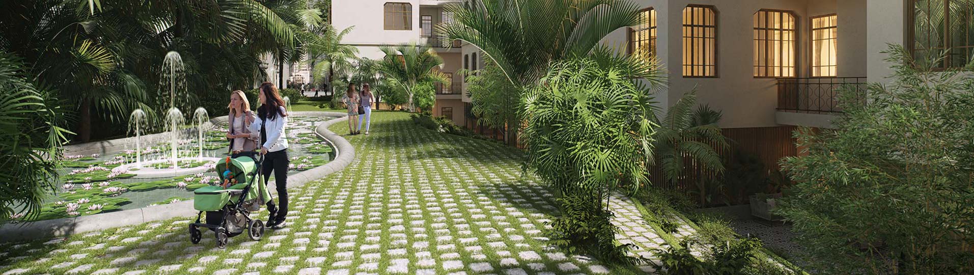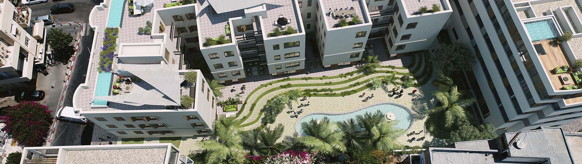 חווית המגורים הייחודית במתחם בנג'ימין, ממשיכה הרבה מעבר לחוויית המגורים בדירות. בלב ליבו של המתחם תוכלו ליהנות מחצר פרטית רחבת ידיים, העשירה בצמחייה ירוקה עם ספסלים ושבילי הליכה פסטורליים. להשלמת אווירת הרוגע והשלווה במתחם, תוקם במרכז הגינה מזרקת מים אקולוגית מרהיבה. כל שנותר לכם, הוא לשבת על אחד הספסלים בגינה ולהתחבר לאווירה ההיסטורית העוטפת את מתחם בנג'ימין.