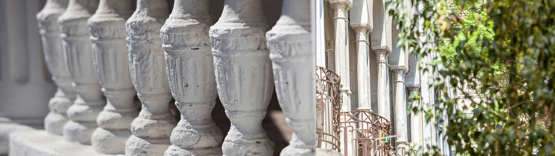 במרכז המתחם ההיסטורי ניצב "בית העמודים" (בית זלמן נח), שתוכנן על-ידי האדריכל יהודה מגידוביץ'. זהו בניין גדול מימדים הנמשך מרח' רמב"ם לרחוב התבור ומשתרע על שטח של כשני דונם. הבניין נבנה בסגנון ניאו-קלאסי ומאופיין בשפע קשתות ועמודים ומכאן כינויו "בית העמודים". במסגרת הקמת המתחם, יבוצע שחזור ארכיטקטוני מלא של תכניות הבניין המקוריות, כולל העיטורים, התבליטים והחריטות, תוך הקפדה על שימור החומרים האותנטיים מהם נבנה הבית. האדריכל יניב פרדו יהיה אמון על מלאכת השימור.